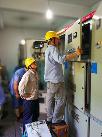 15日一早,廠家和電力公司技術(shù)人員帶著相應(yīng)設(shè)備和工具,先切斷南北配電房主電纜,改為發(fā)電機(jī)供電,同時(shí)為了做到有備無患,中心還請清障施救人員幫忙將移動發(fā)電機(jī)拉至隧道外廣場備用,以保證隧道正常照明及運(yùn)營。配電房內(nèi),20多名技術(shù)人員被分成了組裝組、接線組以及安裝組,大家各司其職、各盡其責(zé),現(xiàn)場一派忙碌的景象。為不影響隧道內(nèi)正常用電,配電房配置的空調(diào)成了擺設(shè),在這悶熱的房間里,大家僅靠一臺電扇一干就是六七個(gè)小時(shí),身上的衣服濕了干,干了又濕,但大家毫無怨言,渴了就喝口水,累了就坐地上休息幾分鐘后又立馬投入到緊張工作中。最終,在15點(diǎn)50左右,所有安裝設(shè)備經(jīng)過聯(lián)調(diào)測試一次通過,隧道又恢復(fù)了正常市電供電。
