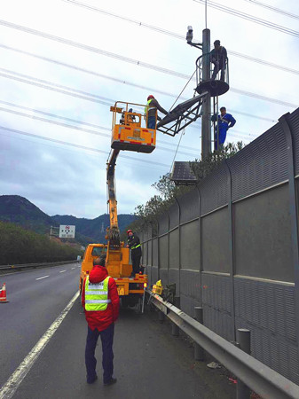 近日,集團工程養(yǎng)護部機電設備維養(yǎng)中心組織施工單位,頂著寒風冷雨對沿線有裂痕破損的云臺太陽能板進行了拆除更換,為即將到來的春運工作打下堅實的基礎。 集團路段共有36個監(jiān)控云臺,它們在提高高速公路管理和服務水平上起著重要作用,當發(fā)生交通異常時,能及時確定事故并實時發(fā)布相應的誘導和救援信息,保障道路暢通,減少財產(chǎn)損失。維養(yǎng)中心在之前一次摸底排查中發(fā)現(xiàn)沿線有10處云臺太陽能板由于年久老化,面板晶體出現(xiàn)不同程度開裂破損,嚴重影響太陽能供電效果,導致監(jiān)控設備無法有效運轉。