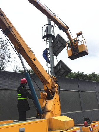 上圖為更換太陽能板現(xiàn)場 為盡快解決這一問題,中心聯(lián)系三家太陽能板供應商,通過對性能、價格、服務等多方面比較后,最終選定杭州一家單位負責此次太陽能板供貨、拆除及安裝工作。1月24日,設備到貨,但同時也碰上了今年入冬以來最強冷空氣。可若不及時更換,勢必會影響春運安全行車。 面對困難,中心隊員并未退縮,每天起早摸黑,帶領安裝人員親赴施工現(xiàn)場,負責監(jiān)管和預警工作。每當路面飛駛而過的車輛帶起陣陣寒風,吹的隊員瑟瑟發(fā)抖時,施工人員都會勸說隊員回車上休息,但都被謝絕了,不僅依舊緊盯施工進度和質量,還協(xié)助他們一起拆卸和搬運。在大家共同努力下,所有破損太陽能板在不到3天的時間里被拆卸和更換,比預定時間提前了整整一天。 更換后的新太陽能板最大輸出功率較之前提高了15%,這將大大提升太陽能板對蓄電池充電效率,保證監(jiān)控云臺有效運轉,為高速的安全暢通保駕護航。 項寅曉