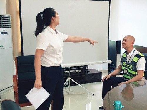 “你們這的東西怎么弄的,怎么每次我都沒辦法通過,還叫不停車收費,每次這樣真是浪費我的時間,我要投訴你們!” “你們怎么收費的?堵這么長還不免費放行?是不是業務不熟悉?” “我拉的綠色產品,為什么不免費?沒走綠色專用車道就不免費嗎?” “你們怎么亂收費的,我的貨明明沒有這么重,超不超載還不是你們說了算!” 這是平日收費站常遇到的問題。為進一步樹立良好的“窗口”形象,減少文明服務投訴事件的發生,臨海南收費所于7月30日至8月2日分批組織班組開展文明服務情景模擬培訓,推動文明服務有效開展。