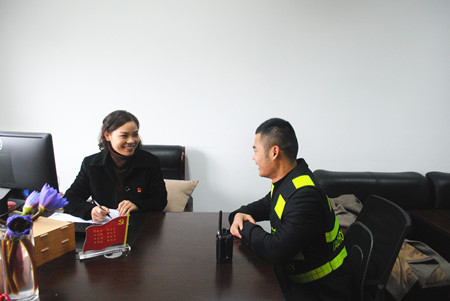 圖為臺州收費所所長助理牟妲與二班班長馬德偵談心
