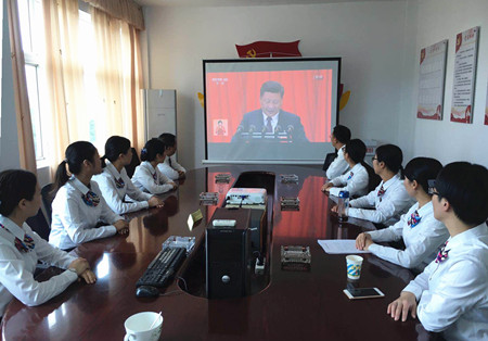 10月18日上午,中國共產黨第十九次全國代表大會開幕,臺州南收費所組織部分黨員、團員、行政人員在所會議室進行收看。