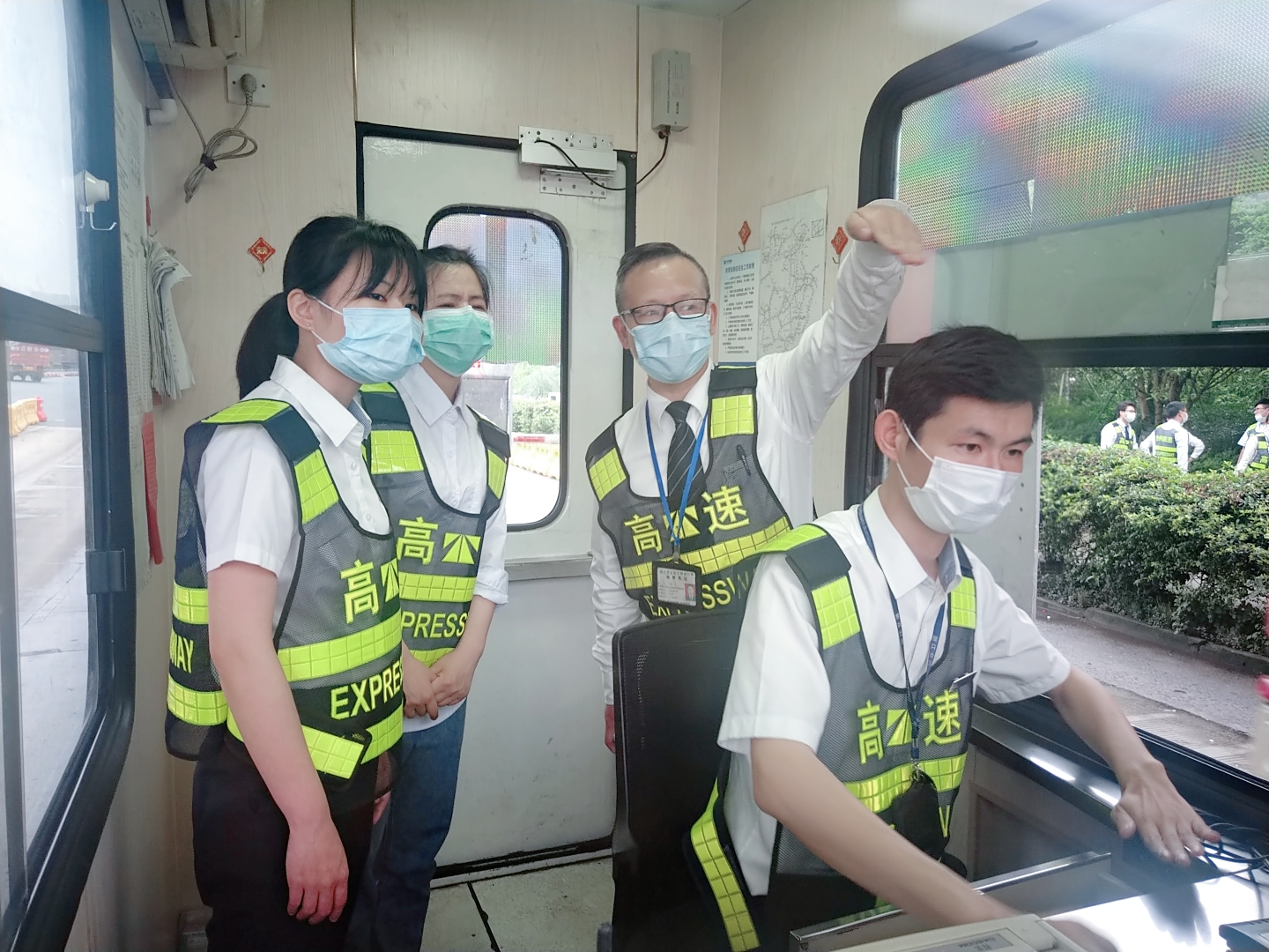 圖為陳軍帶領(lǐng)新員工在崗?fù)づ嘤?xùn) 新員工的到來,為該所注入了新鮮的血液,增添了青春活力。為了讓新員工能夠快速“入鄉(xiāng)隨俗”,盡快適應(yīng)收費站工作環(huán)境,順利完成角色轉(zhuǎn)換,當日他們就跟著資深班長陳軍學(xué)習(xí)相關(guān)業(yè)務(wù)知識。