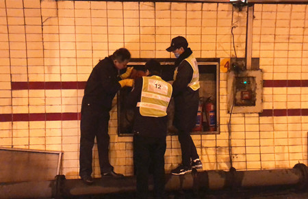 圖為檢查人員在檢查隧道內(nèi)消防箱