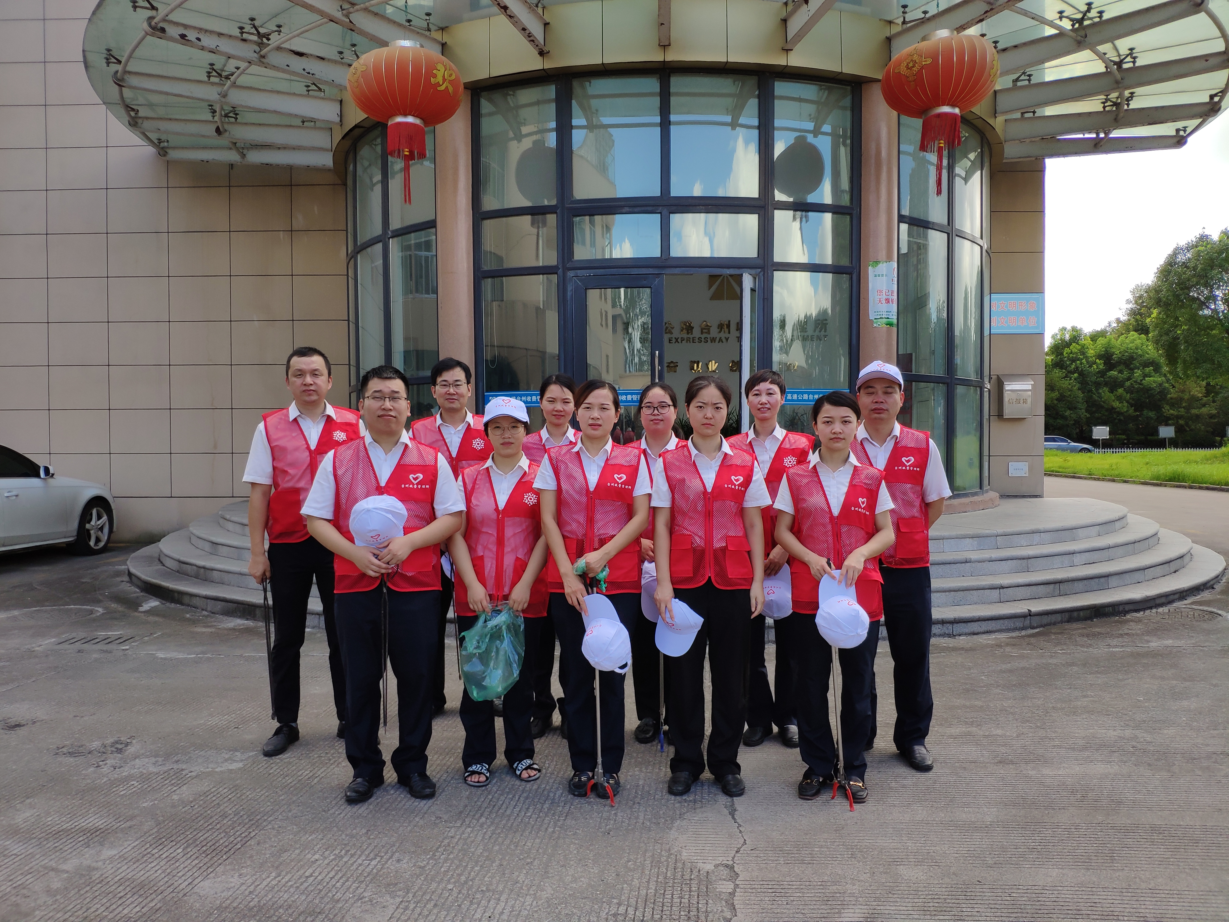 圖為志愿者合影 活動現場,身著紅馬甲的志愿者們,拿著垃圾夾、垃圾袋、掃把、畚斗等工具,重點清理收費站內外廣場的煙頭和白色垃圾。由于上下高速時有不少司乘人員直接把垃圾丟向兩側邊溝,導致收費所兩側邊溝垃圾較多。盡管天氣炎熱,但志愿者們自行分組,三人一組、五人一隊,充分發揮不怕苦不怕累不怕臟的精神,并互相配合集中對一些死角進行清理。