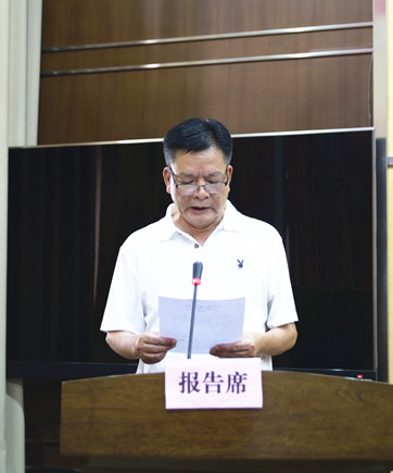 圖為公司副總經理陳保衛宣讀《關于轉讓臺州高速泰和房產公司股權的議案》