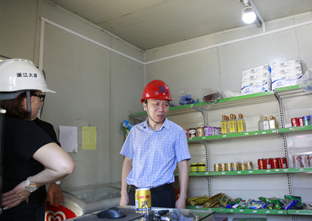 圖為集團副董事長、總經理張建平檢查內環路8#立交民工小賣部 對于檢查中發現的問題,市政公司現場簽發了“臺州高速公路安全管理監督檢查記錄單”,要求施工單位限期整改。 陳林偉