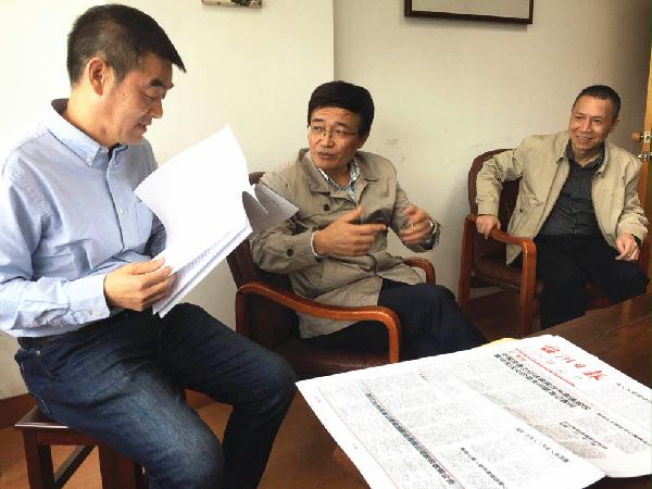 圖為市國(guó)資委主任徐豪和集團(tuán)總經(jīng)理張建平一起走訪(fǎng)市財(cái)政局股東單位