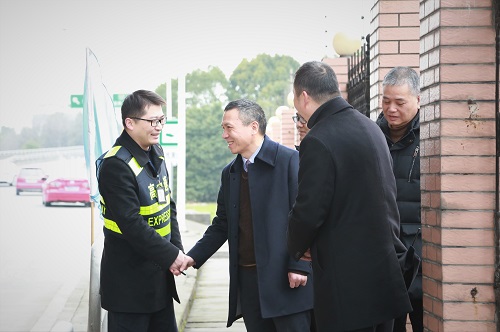 圖為集團總經(jīng)理張建平在臨海南收費站檢查