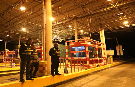 當晚20時許,一切整裝就緒,分流正式開始。瞬間,原來還空曠的臨海南收費廣場車輛絡繹不絕,轟鳴聲不絕于耳。車流各收費所班子成員全數在崗管控現場,當班班組一如既往地沉穩(wěn)應對,微笑接卡、唱收唱付、禮貌迎送,行政班人員輪流值班,時刻準備旁站和補崗。