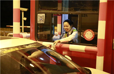 時間一分一秒地走著,收費員們在分流保暢中,堅持以飽滿的熱情,規(guī)范使用迎送手勢和文明用語,做到了“車輛增多不減質,文明服務不打折”。同時旁站人員加強關注過程車輛,不時為有需要的司乘人員提供指路問詢的通行服務。
