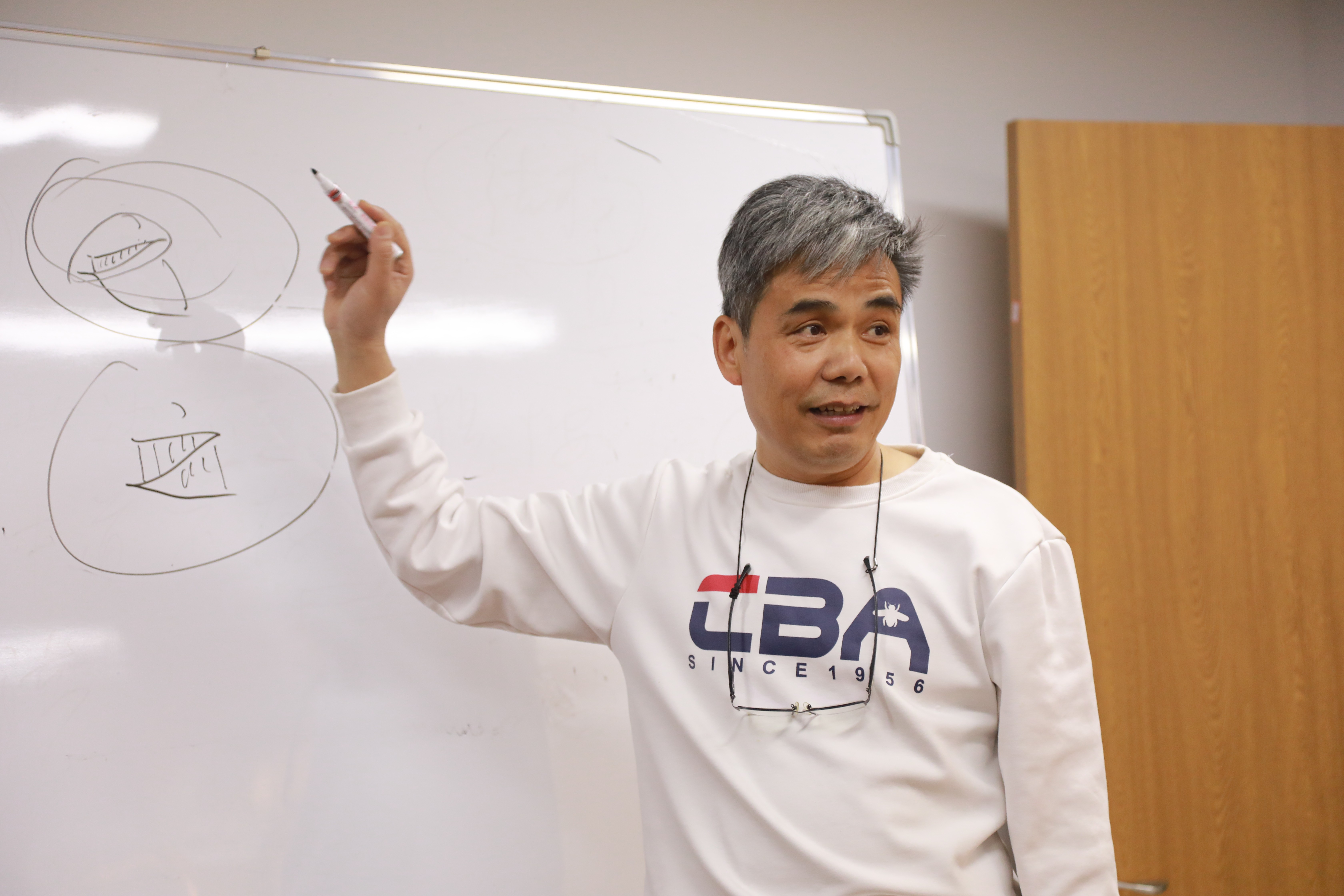 4月13日晚上,公司20樓書法培訓(xùn)班上,書法興趣小組成員濟(jì)濟(jì)一堂,一個(gè)個(gè)正襟危坐,手執(zhí)毛筆,在一張張書法訓(xùn)練紙上認(rèn)真地劃著線條,邊上專業(yè)書法培訓(xùn)教師陳士春一個(gè)個(gè)輪流手把手教學(xué),幫助大家感受毛筆的運(yùn)力技巧、筆尖鋪毫要點(diǎn)及筆尖和紙之間的觸感。培訓(xùn)現(xiàn)場氣氛濃厚,老師用心講課,既有理論解讀,又有實(shí)踐指導(dǎo),學(xué)員們用心領(lǐng)悟,認(rèn)真練習(xí),現(xiàn)場呈現(xiàn)出教學(xué)相長的良好氛圍。