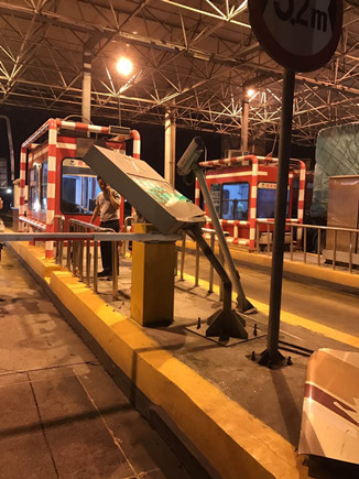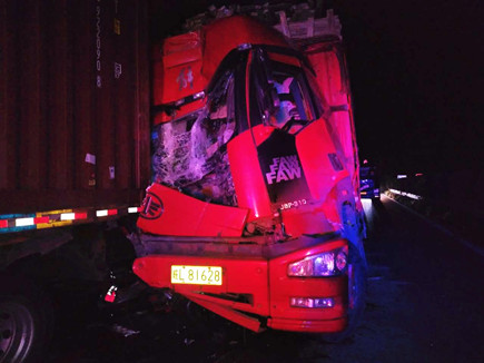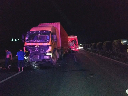 圖為被撞壞的ETC設(shè)備 當(dāng)晚事故接連不斷。晚上22點(diǎn)40分,臺州收費(fèi)所ETC進(jìn)口處,一輛大客車行李車門撞歪顯示屏,同時(shí)也撞壞了一只抓拍攝像頭,造成了較大的路產(chǎn)損失,但是當(dāng)班員工都正在路面上施救,施救中心領(lǐng)導(dǎo)統(tǒng)籌部署,通知兩位在所非當(dāng)班人員赴崗上班,緊急出動,發(fā)揮連續(xù)作戰(zhàn)精神,進(jìn)行及時(shí)處理。 當(dāng)以上事故處理完畢,施救人員正準(zhǔn)備往回趕的時(shí)候,當(dāng)晚23點(diǎn)10分左右,四輛大貨車在寧向1667K+300M處連環(huán)追尾,其中一輛紅色大貨車車頭嚴(yán)重變形并且不斷向外漏油。現(xiàn)場極不安全,情況危急,施救中心員工馬不停蹄,又一次拉響了救援車的警報(bào),為了爭取時(shí)間,甚至通知了另外地點(diǎn)待崗的人員火速趕來,以便能及早處理。此時(shí),施救中心當(dāng)班人員已經(jīng)全體出動,全部戰(zhàn)斗在路上。 王凱