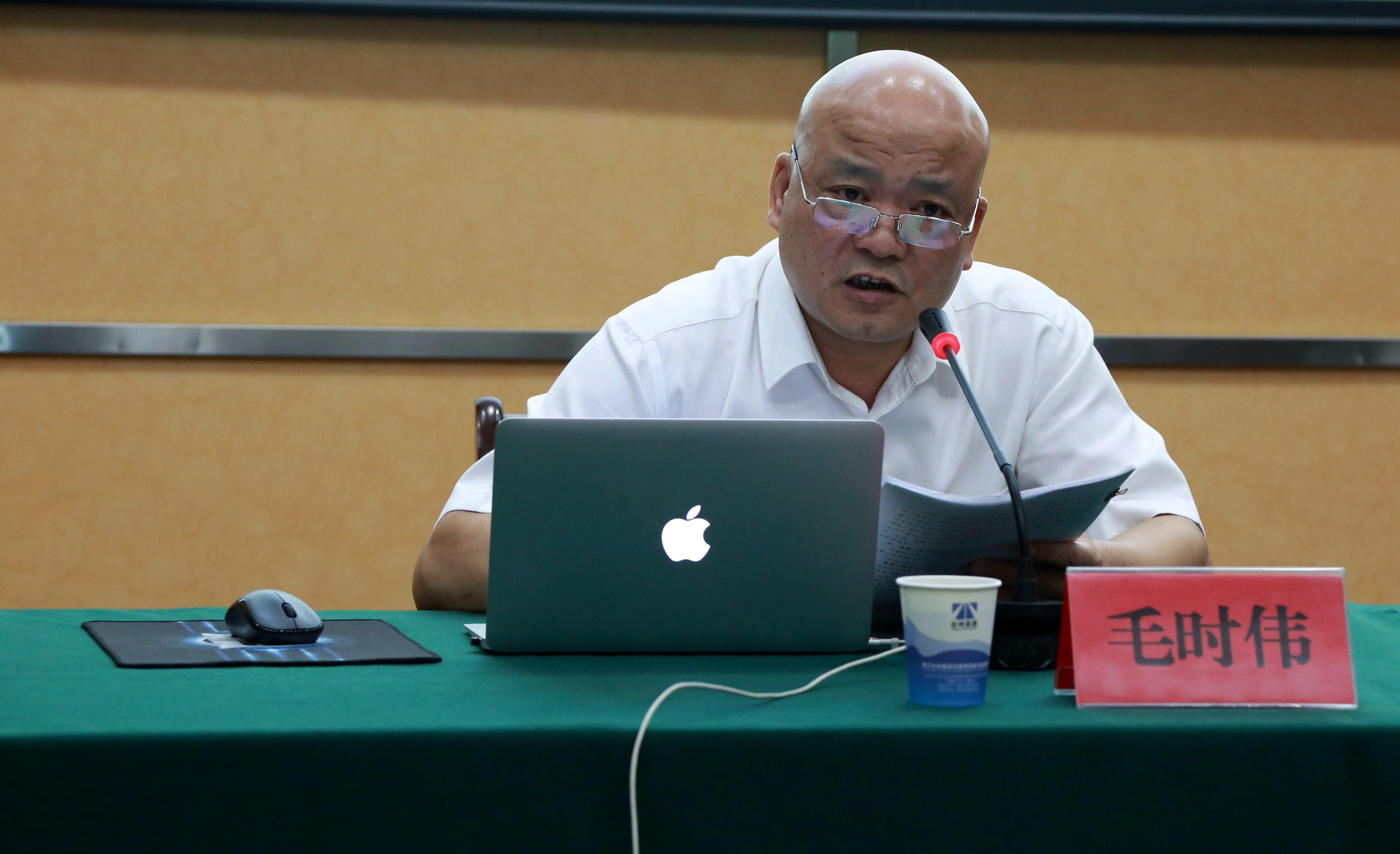 圖為房產公司副總經理毛時偉作專題匯報