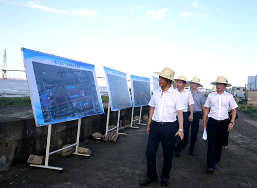 烈日下,調(diào)研組分別實(shí)地察看了海門港埠碼頭與新港區(qū)規(guī)劃建設(shè)用地。結(jié)合海門港埠總公司現(xiàn)狀用地區(qū)域圖及新碼頭選址方案圖展板,羅小將詳細(xì)介紹了港區(qū)碼頭目前區(qū)域現(xiàn)狀及新港區(qū)選址規(guī)劃設(shè)想方案,提出了港區(qū)剩余土地利用、建設(shè)項(xiàng)目規(guī)劃許可、新港區(qū)建設(shè)用地征遷安置等需要政府相關(guān)部門和椒江區(qū)政府大力支持的問題。