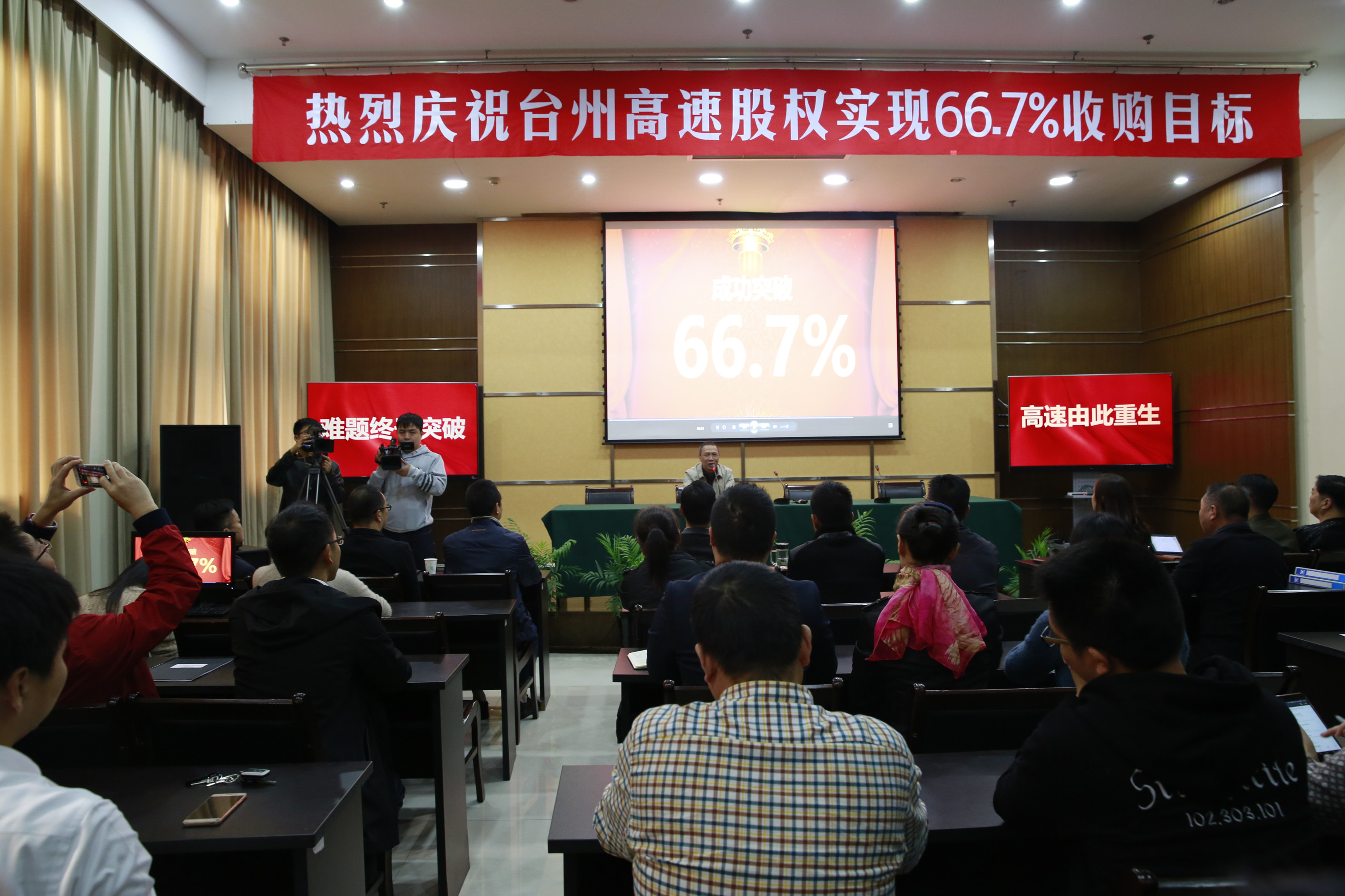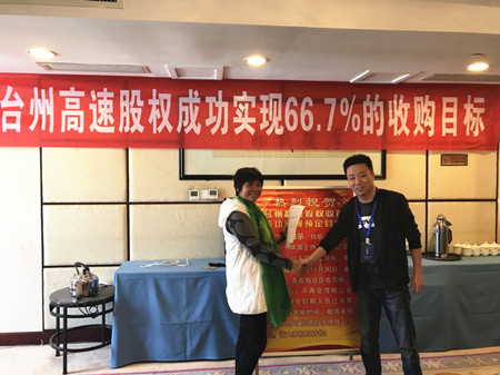 臺(tái)州高速股權(quán)集中和優(yōu)化工作領(lǐng)導(dǎo)小組辦公室主任、臺(tái)州高速集團(tuán)總經(jīng)理張建平鄭重地宣布:“至此,全市共完成臺(tái)州高速股權(quán)轉(zhuǎn)讓6947萬股,臺(tái)州市屬國(guó)企及黃巖財(cái)務(wù)開發(fā)公司合計(jì)持股數(shù)1.441億股,完成了66.7%的預(yù)定收購(gòu)目標(biāo)。”