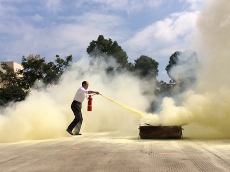 圖為工作人員參加員工技能大比武滅火施救比賽