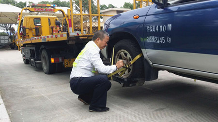 圖為工作人員參加清障車托舉輪胎拖曳比賽 早在節(jié)前,施救中心就未雨綢繆,全面檢查中心六輛清障車,主動聯(lián)系廠方并要求派專員上門服務(wù)。其中對清障車輛的液壓系統(tǒng)進行了檢查維護,添加了液壓油,更換了漏的液壓泵,修理了滲油的油缸和油管接頭,對啟動困難的清障車輛更換了電瓶和馬達,對水溫過高的發(fā)動機更換了電子風(fēng)扇,并對水箱進行清洗,確保節(jié)日運行性能的良好,杜絕了一切安全隱患。 今年國慶、中秋雙節(jié)合并使得假期更長,并且黨的十九大也在10月份召開。為此,施救中心高度重視,不僅全面檢查清障車輛,而且召集全體人員廣泛聽取應(yīng)急應(yīng)對意見,強調(diào)要頂住壓力,克服困難,團結(jié)一心,打贏這一次艱苦的攻堅戰(zhàn)。中心要求管理人員加強駐勤值班,及時掌握路況信息。一線人員不請假,不調(diào)休,加班加點隨時待命,聽候指揮,同時采取就近用餐、提前布控等措施,為保暢道路做好萬全準備。