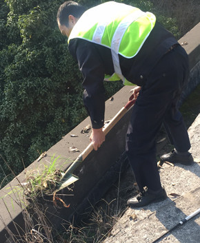圖為清理后的屋頂排水溝 大溪嶺隧道管理所依山而建,落葉、塵土、沙石堆積極容易造成排水溝的堵塞,如汛期來(lái)臨,排水溝堵塞造成的隱患無(wú)窮。 所執(zhí)勤隊(duì)根據(jù)安排,排查配電房、管理房等汛期容易受災(zāi)害影響的隱患,遵循“發(fā)現(xiàn)一處整治一處,整治一處銷號(hào)一處”的原則,對(duì)配電房、管理房的屋頂排水這一安全隱患和薄弱環(huán)節(jié)進(jìn)行清理,以實(shí)際行動(dòng)落實(shí)整改和消除隱患,確保2018年安全度汛。 陳智慧