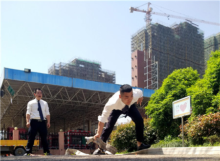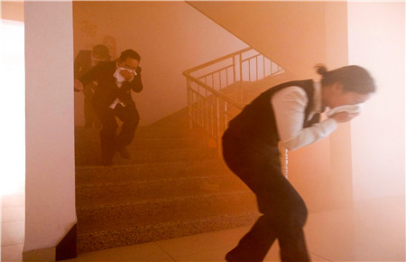 該演練模擬了生活樓發(fā)生火災,員工一發(fā)現火情就立即撥打了報警電話。參加演練人員聽到警報聲后,迅速拿起打濕的毛巾捂住口鼻,手扶墻體或樓梯扶手,俯身低姿從三樓或二樓,向安全通道有序撤離。全體人員不一會就疏散到了安全地帶,同時連接好消防水帶,迅速跑至火源附近,對準火源有效滅火。
