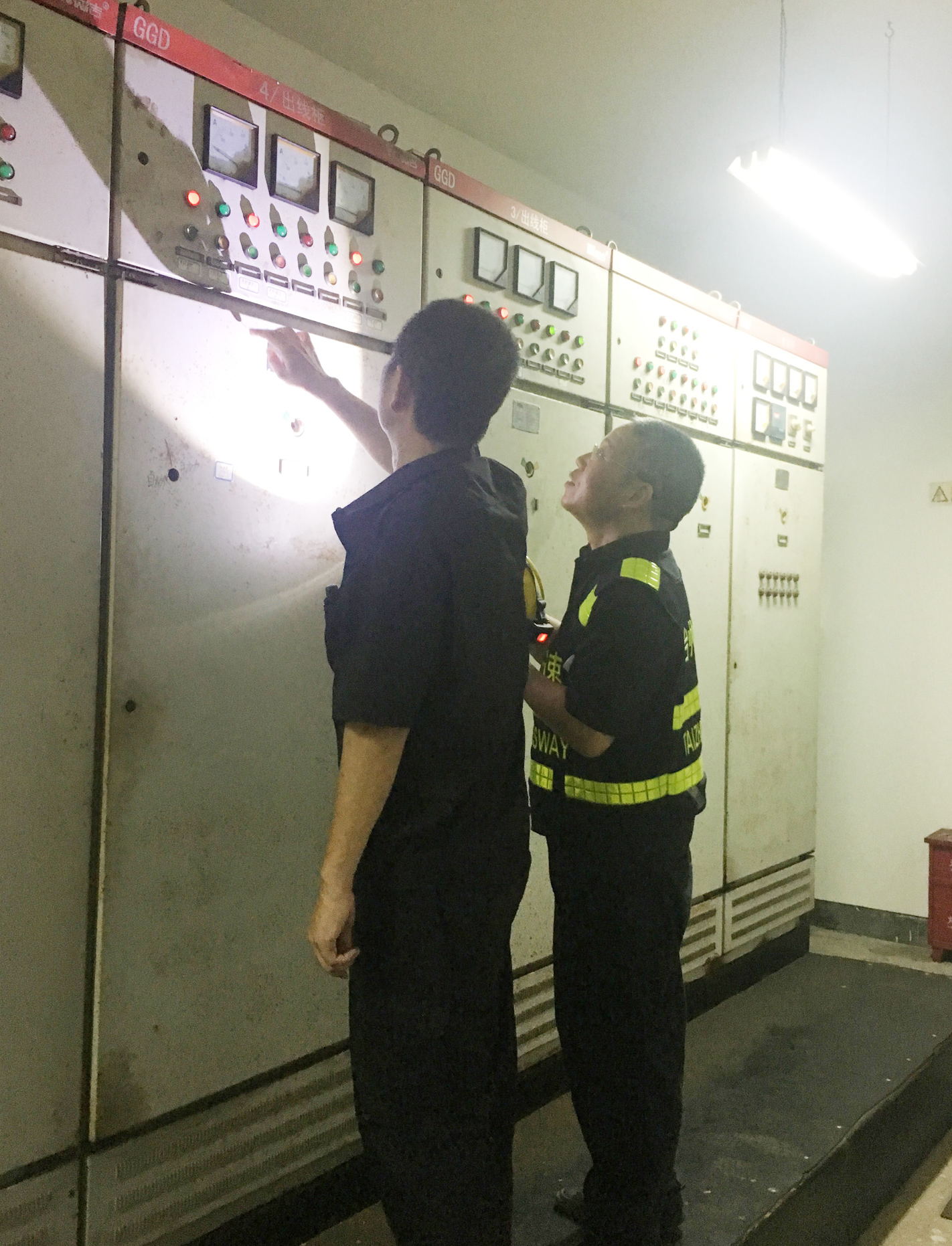 10小時緊急搶修完成三起機電設(shè)備故障 ——連續(xù)奮戰(zhàn)搶修紀(jì)實 7月27日當(dāng)晚8點30分,維養(yǎng)中心值班室一陣急促的電話鈴聲響起:“你好,我是臨海南收費所,我們這供電不正常,好多設(shè)備不能啟動,影響收費效率,急需處理!” 鈴聲就是命令,放下電話,中心搶修人員立刻緊急出動。經(jīng)過檢測,發(fā)現(xiàn)該所三相市電中A相沒電,雖然備用發(fā)電機也已開啟發(fā)電,但由于市電并沒完全斷開,市電與自發(fā)電的全自動轉(zhuǎn)換開關(guān)就無法完成轉(zhuǎn)換,導(dǎo)致了用電問題。這種情況下,應(yīng)急處理方法就是讓備用發(fā)電機運轉(zhuǎn)起來,于是搶修隊員們手動斷開市電進(jìn)線總閘,再將萬能斷路器開關(guān)轉(zhuǎn)至自發(fā)電檔。頓時,夜幕中的臨海南收費所燈火通明,空調(diào)壓縮機等用電設(shè)備開始正常運轉(zhuǎn)。