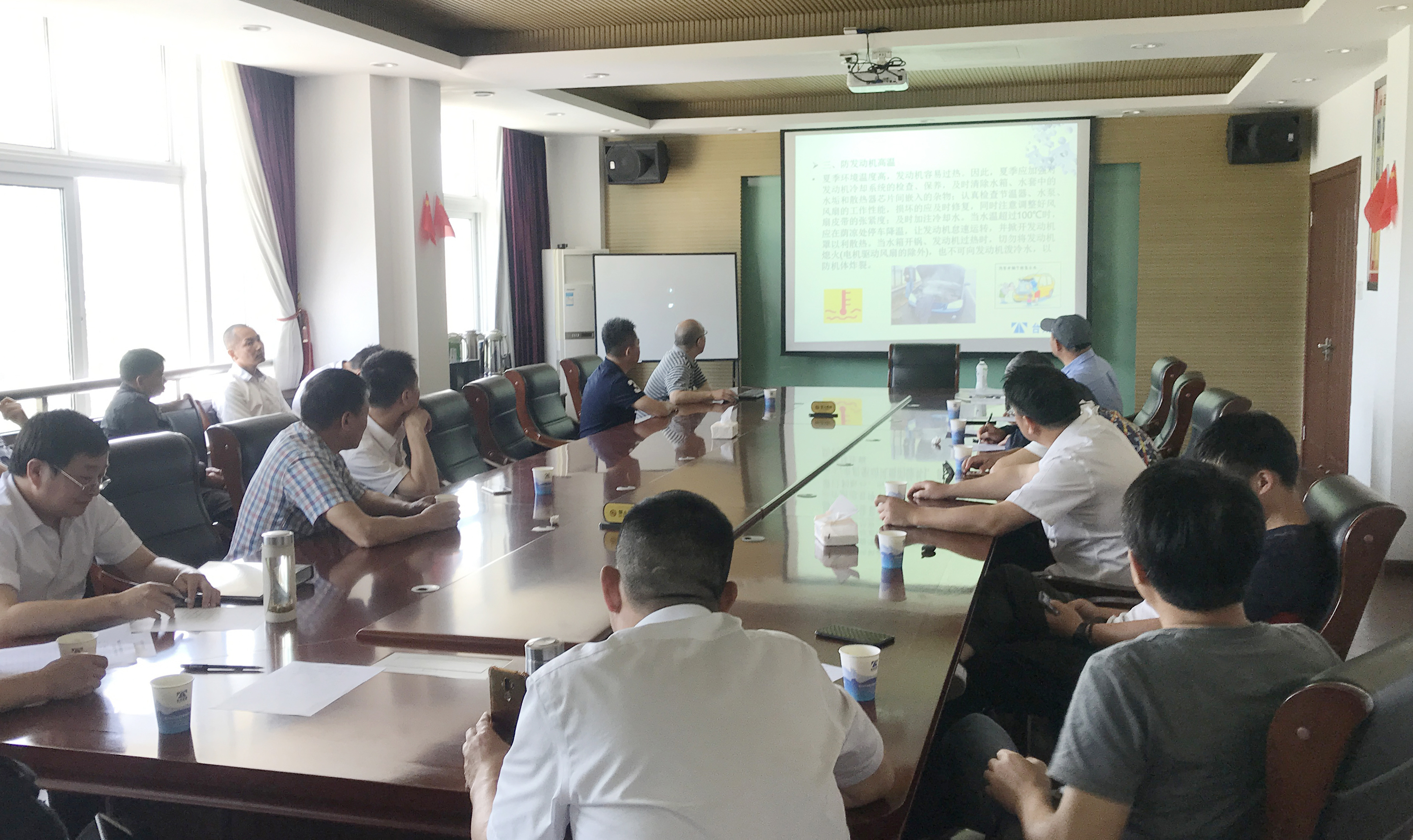 圖為培訓現場 會議指出,夏季是公司全年安全生產工作的重點、難點,為確保全公司安全生產形勢的穩定,要提高駕駛員遵守交通規則和安全生產操作流程的自覺性,強化員工自我保護意識,杜絕違章,預防事故,提高全體駕駛員的安全防范意識,確保夏季行車安全! 胡正熙