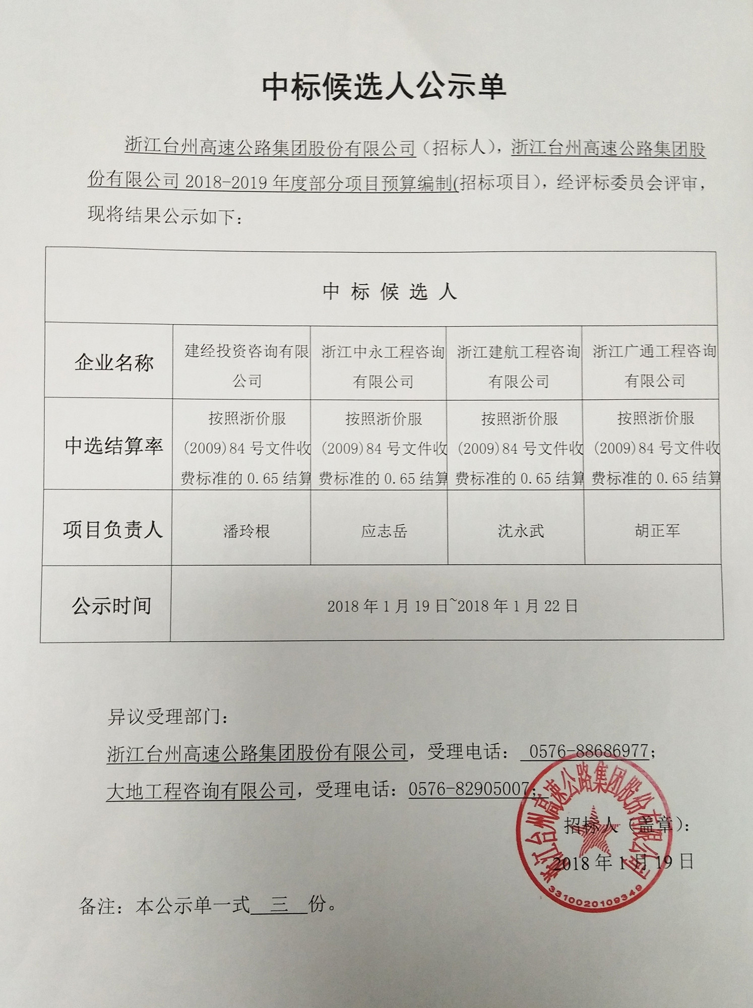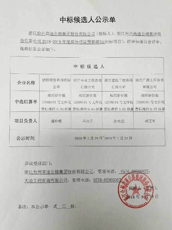 2018-2019年度部分項目預算編制中標候選人公示單