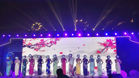 圖為旗袍秀現(xiàn)場 晚會一開場,由椒江區(qū)前所街道前所村(全國文明村)表演的鑼鼓舞《歡慶新時代》馬上將觀眾帶入到熱烈的氣氛中。隨后,各家單位選送的15個節(jié)目以小品、舞蹈等多種形式,展示學(xué)習(xí)貫徹落實十九大的成績,歌頌新時代黨領(lǐng)導(dǎo)下的新氣象。 公司員工包德福代表公司參加晚會,獨(dú)唱歌曲《天際》,其動聽的歌聲贏得了現(xiàn)場觀眾的陣陣掌聲和喝彩。 周茂森